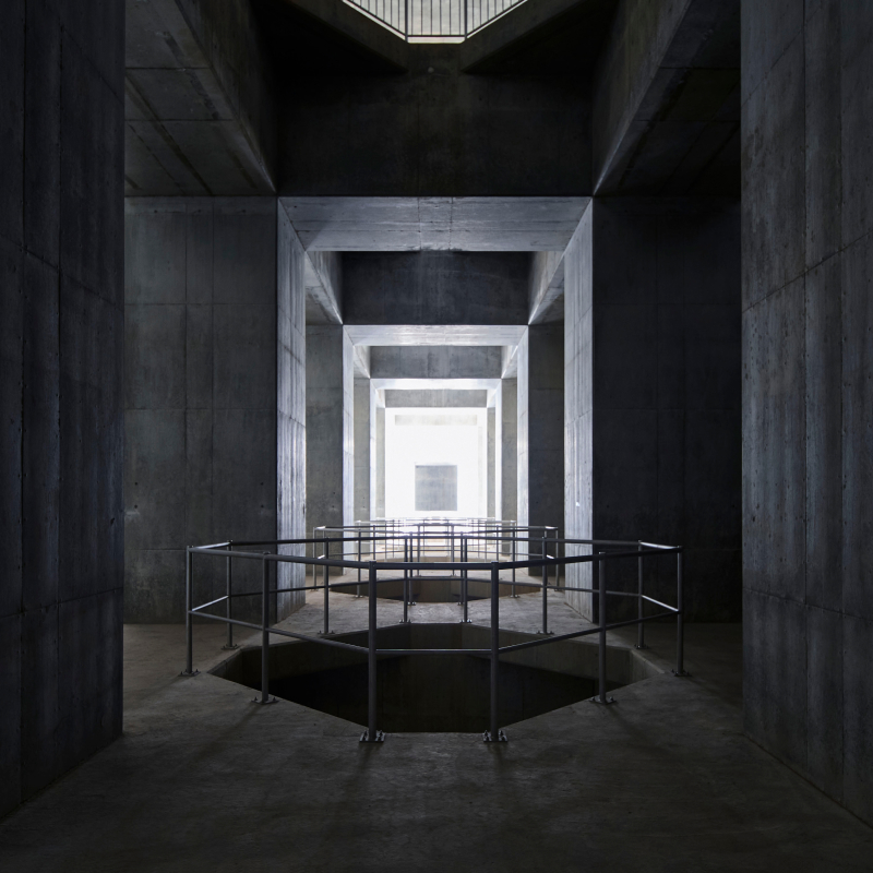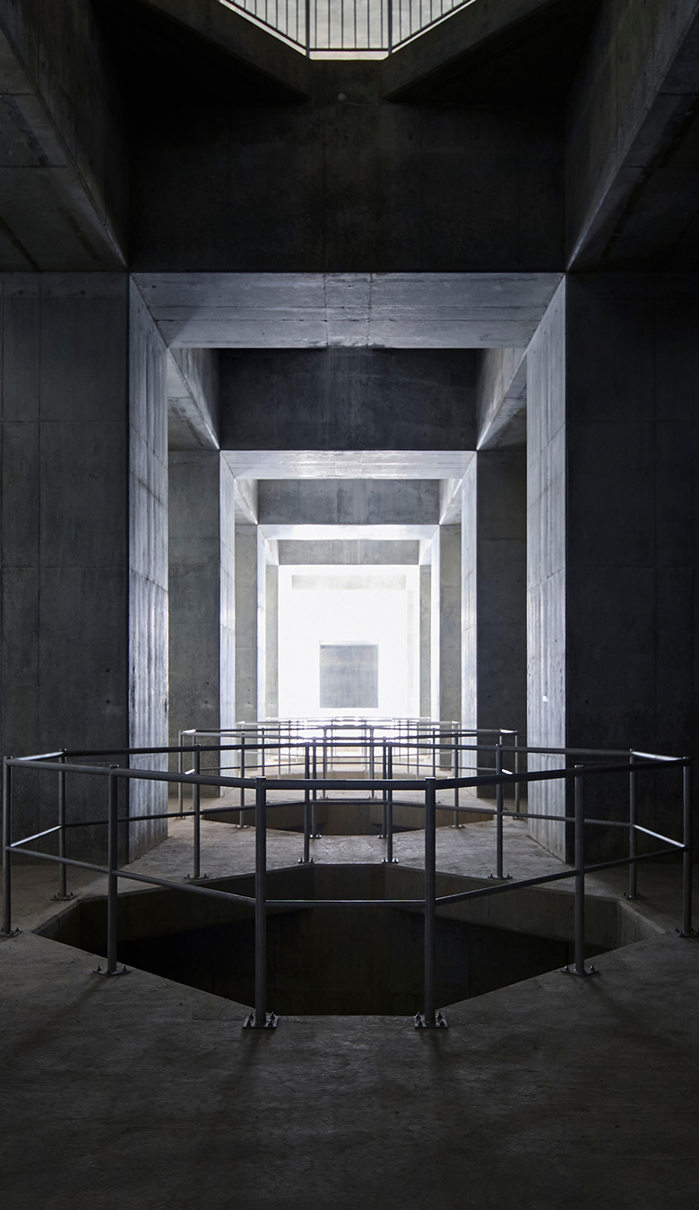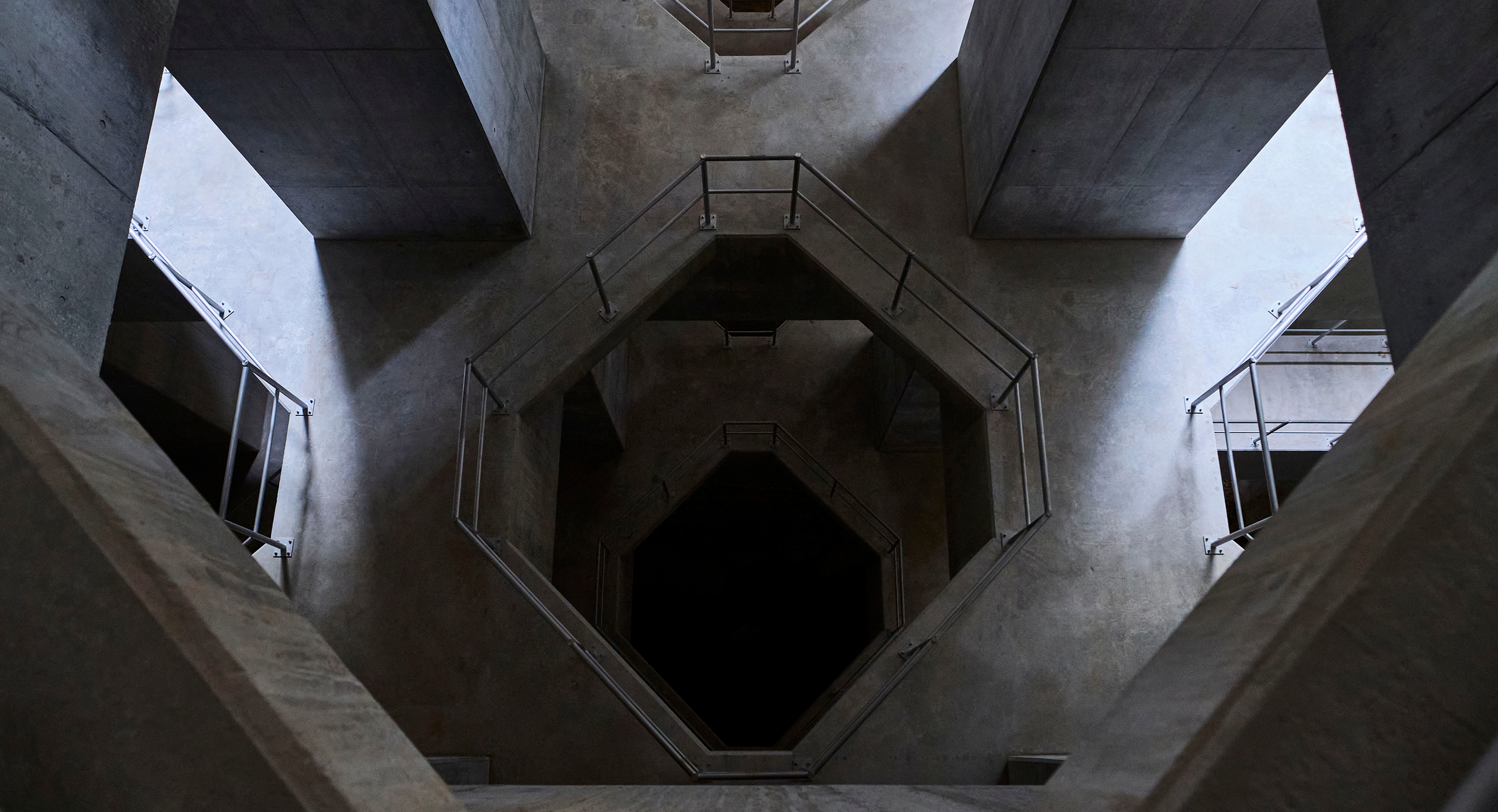 函体(ケーソン)最深部から見上げた様子。内部は4層になっている