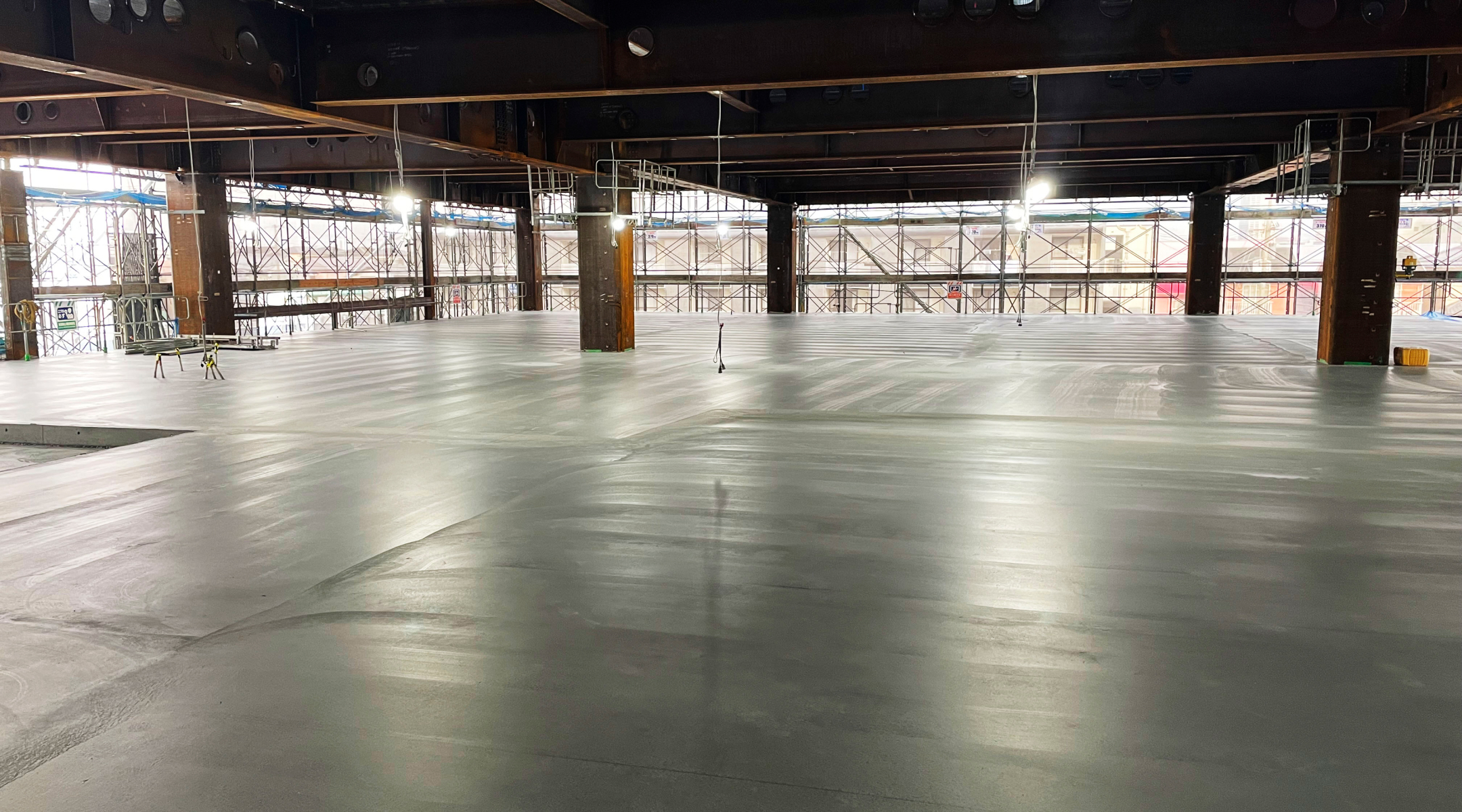 ロングスパン架構の建設現場