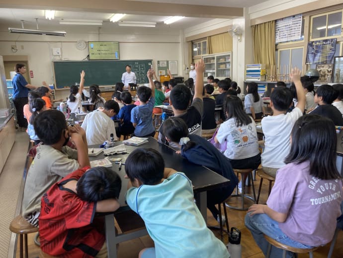 2024年度においても、外来植物オオキンケイギクの駆除や支店屋上緑地での在来植物による生態系ネットワークの構築、「なごや環境大学」での小学生対象の環境共生講座の開催を継続して取り組むとともに、名古屋市内の小学校にて4年生約120名を対象に環境授業を開催するなど新しい取り組みも実施しています。