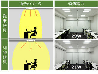 開発器具は、従来の照明器具と比較し、最大30%程度省エネルギーとなります。